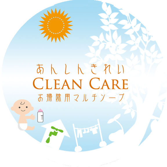 純植物性のお掃除用マルチソープ。液性は弱アルカリ性。希釈率を変えることで、家中の汚れを丸ごとカバーできます。20%の希釈液では、除菌スプレーとしても使用できます。赤ちゃんやお肌のデリケートな方の肌着洗いや、介護現場では消臭スプレーとしても使われています。家中を住む人も安全に楽しく家の中をクリーンにケアすることができるよ。だからネーミングはクリーンケアなんです・・・笑